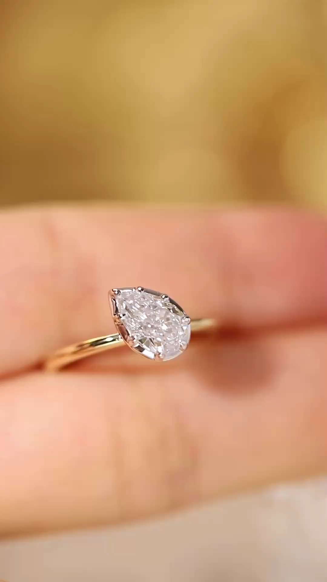 Lucky Pear Solitaire Lab Grown Diamond Engagement Ring in 14K Two-Tone Gold | Classic Yellow Gold Band with White Gold Setting